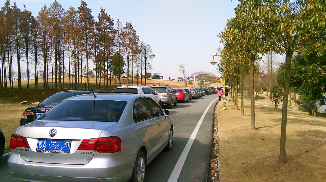 (圖為各地車輛等待進(jìn)入景區(qū))