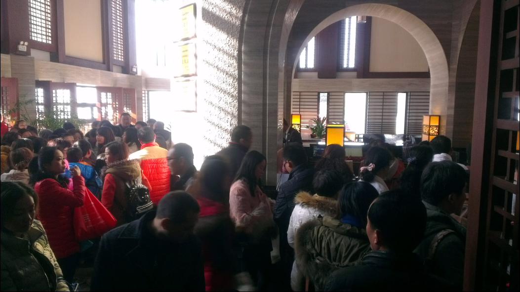 (圖為游客在溫泉入口等待入場(chǎng))