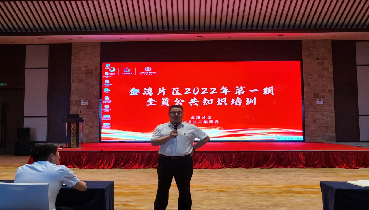 4月27日,金灣片區(qū)組織全體員工在酒店文泉廳開展“金灣片區(qū)2022年第一期全員公共知識(shí)培訓(xùn)”,共80余人參訓(xùn)。