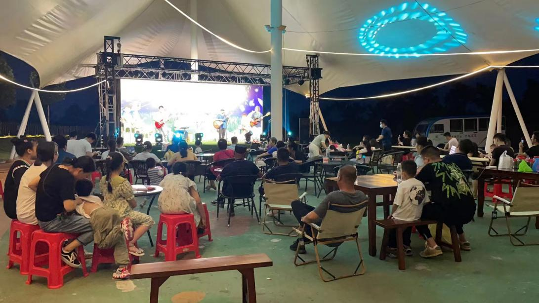 悅兮半島恐龍園增設(shè)無動(dòng)力設(shè)備變身天空之傘網(wǎng)紅主題公園,彩虹滑草、卡通氣模、卡通搖搖車、網(wǎng)紅秋千、小吃一條街等火力全開,現(xiàn)場(chǎng)熱鬧非凡;店內(nèi)設(shè)置包粽子、親子手工課程等親子項(xiàng)目;在埋鍋造飯項(xiàng)目現(xiàn)場(chǎng),舉辦的“嗨啤盛宴 狂歡一蝦”啤酒音樂龍蝦節(jié),融合篝火晚會(huì)、樂隊(duì)駐唱、哈啤挑戰(zhàn)賽,吸引眾多本地親子游家庭參與。