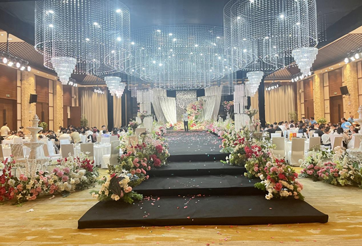 國慶期間,金灣酒店張燈結彩,處處洋溢著喜慶的氛圍。華麗的宴會廳被精心布置成一個個夢幻的婚禮殿堂,璀璨的燈光、嬌艷的鮮花、精美的裝飾,無一不展現(xiàn)著酒店對每一場婚宴的用心與專注。