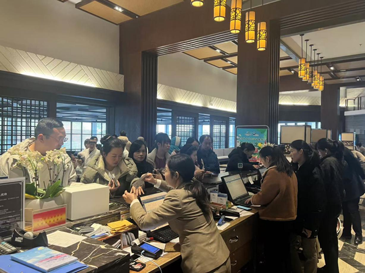 酒店前臺(tái)人頭涌動(dòng),工作人員忙而不亂,高效為游客辦理入住手續(xù)。溫泉區(qū)內(nèi)熱氣升騰,處處彌漫著歡聲笑語,游客在溫暖的湯池里療愈身心,怡然自樂。餐廳不時(shí)飄來誘人香味,洪湖藕湯、清水大閘蟹、美味河鮮……地道的洪湖特色美食,讓美食不止于口腹之欲,更增添了生活的樂趣和幸福感。