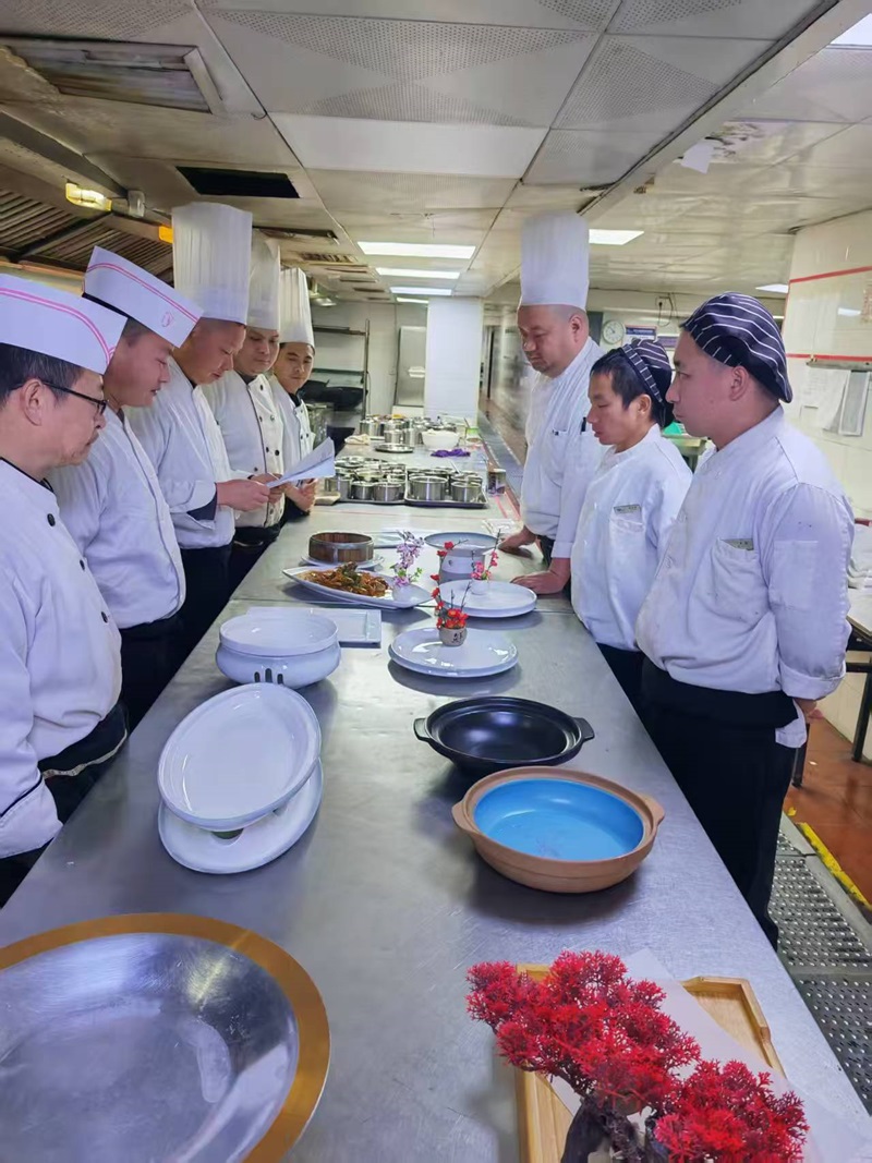 酒店餐飲區(qū)域同樣備受歡迎,除夕當(dāng)天共預(yù)訂16桌團(tuán)年宴,為賓客們準(zhǔn)備了豐盛的年夜飯。年夜飯融合了傳統(tǒng)與現(xiàn)代的美食元素,既有寓意吉祥的經(jīng)典菜肴,又有符合現(xiàn)代人健康飲食理念的創(chuàng)新菜品。每一道菜都由酒店的大廚精心烹制,選用新鮮的食材,注重口感和營養(yǎng)的平衡,讓賓客們在品嘗美食的同時,感受到家的溫暖。
