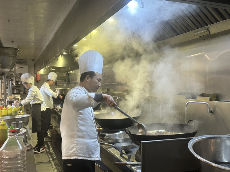 餐飲服務中心熱火朝天,大廚們堅守灶臺,精心烹制一道道美味佳肴,從豐盛的年夜飯?zhí)撞偷酱汗?jié)期間的特色餐點,用精湛廚藝滿足賓客味蕾。服務員們穿梭席間,微笑添茶送水、撤盤上菜,熱情回應客人需求,讓每一餐都滿溢家的味道。