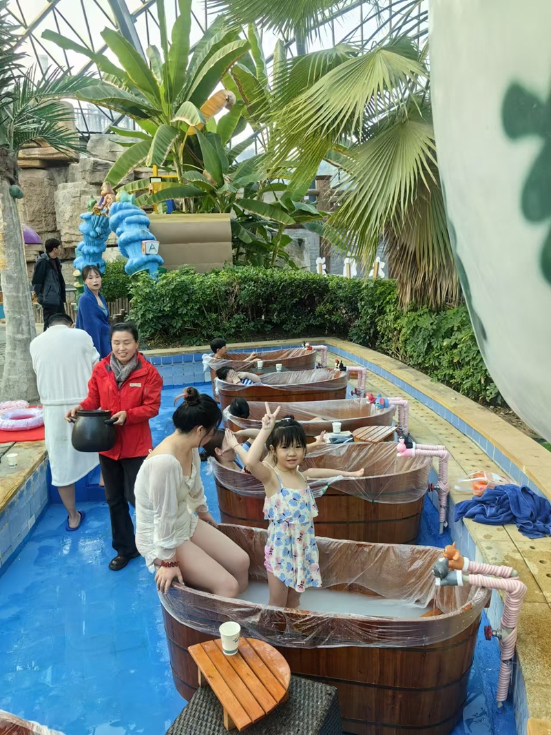 悅兮半島溫泉開業(yè)已十余年,始終堅守品質(zhì),溫泉水當日灌注,不稀釋、不加料、不重復(fù)使用,水質(zhì)獨特,療效顯著,在溫泉行業(yè)中久負盛名。蛇年春節(jié)期間,悅兮半島溫泉成為游客冬日休閑養(yǎng)生的熱門打卡地,這里人氣格外旺盛,而全新推出的木桶藥浴項目更是成為眾多游客消費熱點。