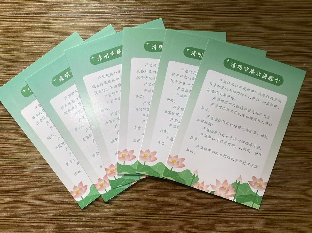 為深入推進(jìn)中央八項(xiàng)規(guī)定精神學(xué)習(xí)教育,洪旅集團(tuán)紀(jì)委向全體黨員干部發(fā)放了清明“紀(jì)”語——“清明節(jié)廉提醒卡,積極開展廉政教育,強(qiáng)化“清蓮洪旅”品牌建設(shè),要求全體黨員干部恪守紀(jì)律“紅線”,做“清蓮洪旅”的踐行者、文明新風(fēng)的先行者,營(yíng)造風(fēng)清氣正的良好氛圍,讓清明節(jié)更“清明”。